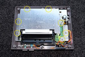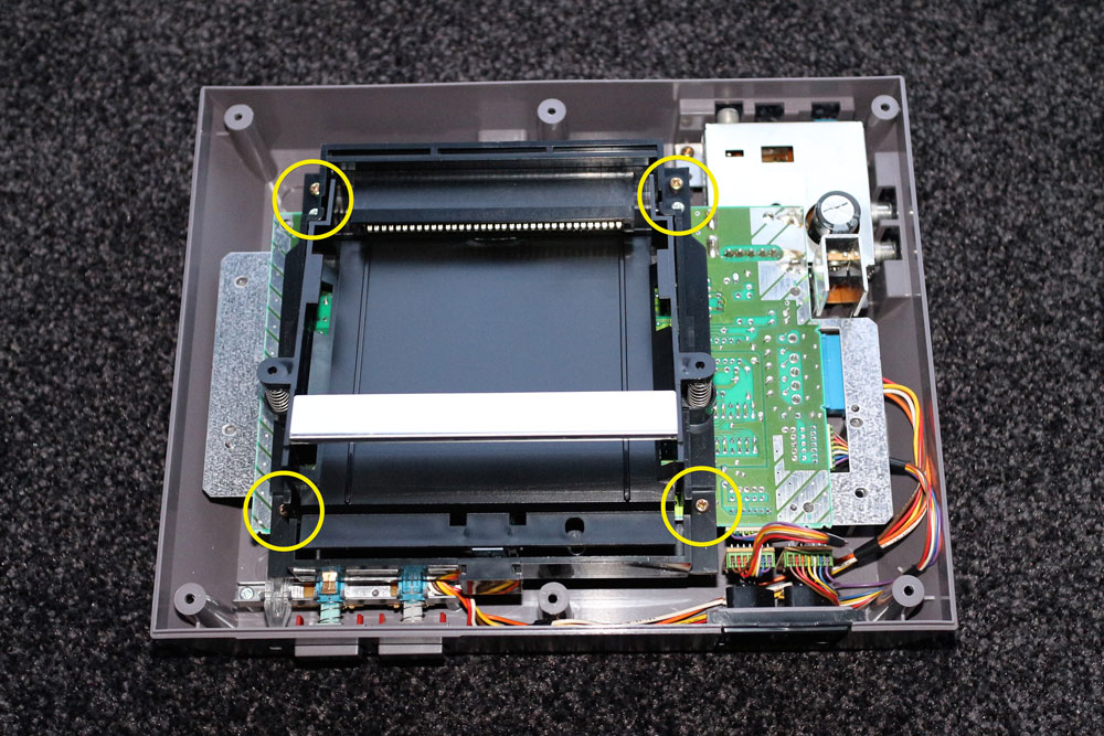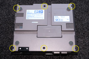Jetzt wird es etwas aufwendiger, da der Pin-Connector im Inneren der Konsole liegt und ohne eine Öffnung des NES-Gehäuses nicht erreichbar ist. Ihr müsst dazu die 6 Schrauben an der Unterseite des NES mit einem Kreuz-Schraubendreher herausdrehen, um den Deckel der Konsole abnehmen zu können. Anschließend entfernt ihr durch Lösen der Schrauben das silberne Schutzblech.