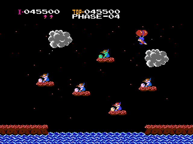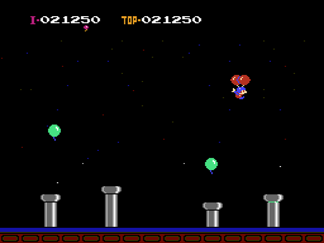 Fliegen kann so einfach sein – wer hat sich als Kind damals nicht gewünscht, sich ein paar Luftballons umzuschnallen und mit den Armen wedelnd abzuheben? Genau darum geht es in Balloon Fight! Als einer der frühen Inhouse-Titel reiht sich Balloon Fight in die Reihe solcher arcadelastiger Spiele ein, bei deren Entwicklung sich Nintendo durchaus von zeitgenössischen Spielhallenklassikern inspirieren ließ, um das eigene Sortiment zu erweitern. In diesem Fall bediente man sich am Titel Joust von Williams Electronics, das später auch noch für das NES umgesetzt wurde und zu dem sich gewisse Parallelen im Gameplay nicht leugnen lassen. Lieferten sich in Joust noch Ritter auf fliegenden Straußen spannende Luftgefechte, wobei sie ihre Kontrahenten per Landung auf den Kopf ausschalteten, so galt es in Ballon Fight, nach dem gleichen Angriffsprinzip die Ballons von an ihnen hängenden Fliegerassen zu zerstören, um sie abstürzen zu lassen. Von einem bloßen Klon oder billigem Abklatsch von Joust kann bei Balloon Fight aber nicht die Rede sein, da Nintendo es verstand, das simple Spielprinzip sinnvoll zu erweitern. Ganz nebenbei versprüht Balloon Fight nicht zuletzt aufgrund des Themenwechsels und der besseren technischen Aufmachung deutlich mehr Charme als der Automatenzock aus dem Hause Williams Electronics.