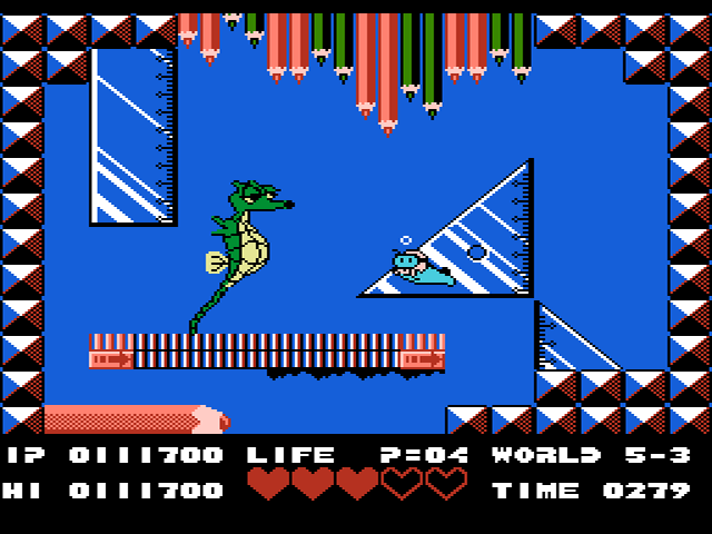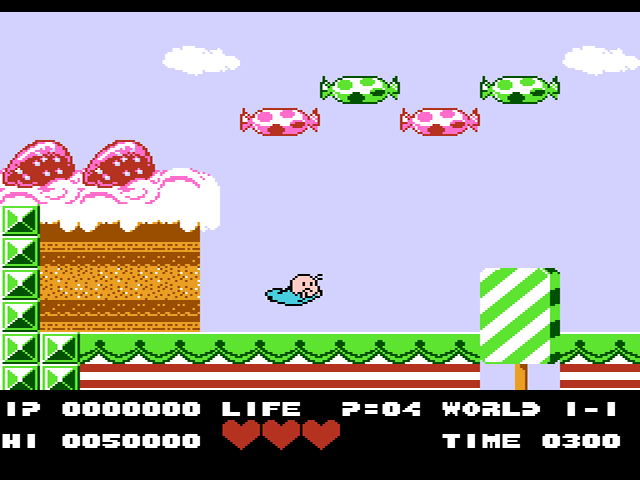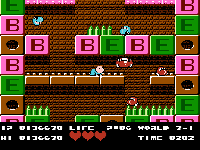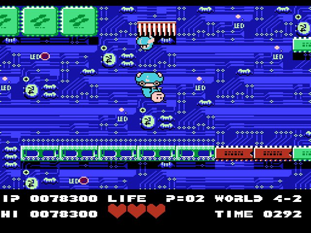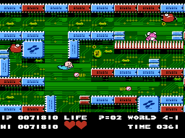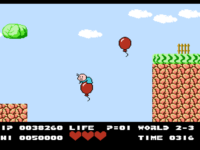 Die meisten Levels sind zwar nicht allzu lang, dafür bleibt der Titel durchgehend herausfordernd. Bei den meisten Levels handelt es sich um gewöhnliche, horizontal scrollende Jump ’n‘ Run Kost. Aufgelockert wird diese Standardformel aber immer mal wieder durch Unterwasserareale oder auch überdimensionale Lebensmittel, wie etwa einer Sahnetorte, durch die es einen Tunnel gen Ziel zu graben gilt. Ein weiteres Highlight sind die vertikal scrollenden Passagen, die in ihrem Aufbau ein wenig an den NES Klassiker Ice Climber erinnern und von der oben erwähnten Ballonmechanik bestens Gebrauch machen. Das Leveldesign verdient fast durchweg das Prädikat "Großartig", denn jeder Gegner und jede Plattform scheint mit Bedacht gesetzt worden zu sein und auch unfaire Stellen gibt es so gut wie nie. Generell führt so ziemlich jedes Level neue Gegnertypen oder Spielmechaniken ein, die der Spieler bis zum Ende des Abschnitts perfekt verinnerlicht haben muss. So herrscht in oben erwähnter Computerchips-Welt etwa zeitweilig in bester Mega Man 5-Manier ("Gravity Man"-Stage) umgekehrte Schwerkraft vor, so dass ein kompletter Bereich kopfüber an der Decke entlang absolviert werden muss. In einer weiteren Stage hat man sich einer Idee aus einem der Verließe in Super Mario Bros. bedient, so dass der Spieler in einer Art Labyrinth die richtigen Abzweigungen nehmen muss, um nicht in einer Endloswiederholung der selben Abschnitte gefangen zu bleiben.