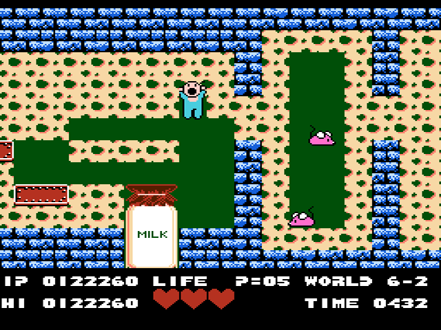 Wie ihr es anhand unserer Screenshot-Galerie bereits erahnen könnt, spielt Upas Abenteuer auch technisch in der oberen Liga des Famicoms mit, insbesondere wenn man das Ersterscheinungsjahr des Titels beachtet. Nicht nur von tollen Farbpaletten wurde für die kunterbunten Welten Gebrauch gemacht, sondern auch die niedlichen, im Animé-Stil herrlich überzeichneten Animationen der einzelnen Figuren wissen zu überzeugen. Die Detailverliebt macht sich ebenfalls in den Hintergründen bemerkbar, so dass sich grafisch ein wunderbares Gesamtbild ergibt, dass stets ohne Framerate-Einbrüche oder Sprite-Flackern auskommt. Die euphorisch anmutende Musik untermalt das bunte Treiben in den Fantasiewelten absolut stimmig und hilft durch seine neckischen Kompositionen sogar über den einen oder anderen Frustmoment hinweg. Lediglich ein paar mehr Musikstücke hätte dem Spiel gut zu Gesicht gestanden, da insbesondere das Standardoberwelt-Theme etwas zu häufig bemüht wird und sich entsprechend früh ins diesbezüglich bereits geschundene Gamerhirn auf ewig einzubrennen droht.