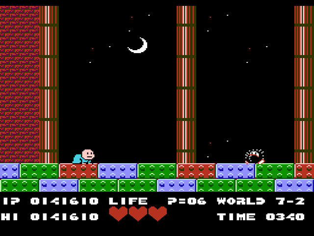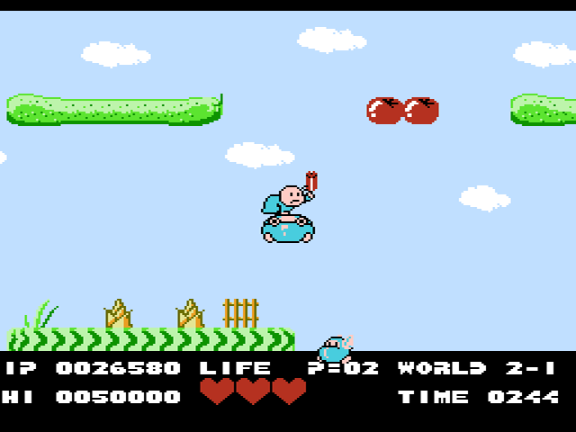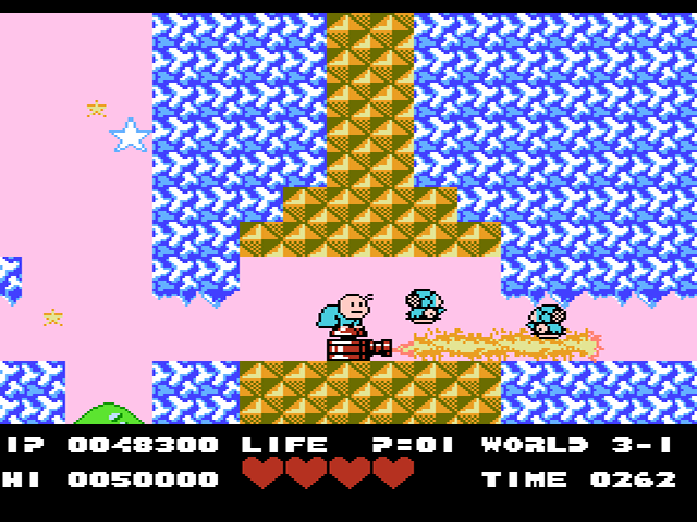 Mit einem Umfang von 21 Levels fordert Bio Miracle Bokutte Upa vom Spieler sicherlich einen langen Atem sowie eine ausgiebige Gamingsession am Stück. Da der Titel im Verlauf des Abenteuers aber wie erwähnt stets mit neuen Elementen aufzutrumpfen weiß, wurde die Spieldauer von Konami genau richtig gewählt. Solltet ihr die Gelegenheit haben, zwischen den Versionen für das Famicom Disk System und für das Famicom wählen zu können, sei letztere empfohlen. Neben den nur leichten, kosmetischen Änderungen wie einem geänderten Titelbildschirm enthält diese nämlich zusätzlich einen Easy Mode, der Upa bei Spielbeginn mit mehr Leben ausstattet und ihn mehr Gegentreffer als im Normal Mode einstecken lässt. Des Weiteren wurde für die fünf Jahre jüngere Famicom-Version der Soundtrack überarbeitet und klingt in dieser Fassung einfach sehr viel voller als im Original, ähnlich wie dies auch bei der Konvertierung eines Castlevania 2 der Fall war. Wie eingangs bereits erwähnt wurde, erschien auf der Wii Virtual Console die Famicom Disk System Variante. Trotz der Vorzüge des Famicom-Moduls können wir euch aber auch den Download wärmstens ans Herz legen, denn Bio Miracle Bokutte Upa ist ein echter Geheimtipp unter den Famicom-Plattformern und zählt als Modulversion zu den eher teureren Spielen.