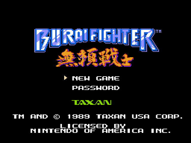 Viel Vorgeplänkel gibt es in Burai Fighter nicht, bevor man in das actiongeladene Gameplay eintaucht. Zunächst darf entweder ein neues Spiel angefangen werden, oder aber man fängt per Passwort direkt dorthin wieder an, wo man zuletzt aufgehört hat. Außerdem hat man sich zwischen drei (plus einer zusätzlichen vierten) Schwierigkeitsstufen zu entscheiden, die getreu der Flugfähigkeit der Spielfigur die Namen Eagle, Albatross, Ace und Ultimate tragen. Glücklicherweise ist das Passwortsystem sehr effizient gestaltet: der Etappenspieler braucht bei Burai Fighter keine elendig langen kryptischen Aufzeichnungen vornehmen, denn jedes Passwort besteht aus lediglich vier Zeichen.