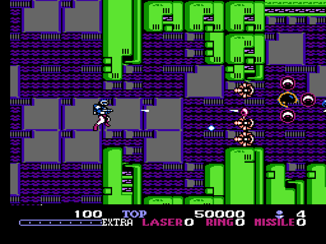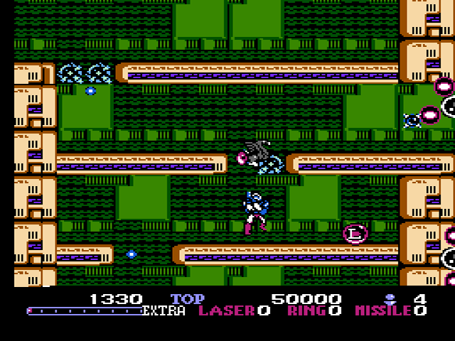 Bei der Bekämpfung der Widersacher erweist sich das 8-Wege-Schusssystem als äußert nützlich, dass es ermöglicht, jeden noch so gut verschanzten Gegner aus nahezu jeder Position auf dem Bildschirm zu erledigen, sofern dies nicht durch im Weg stehende Hindernisse verhindert wird. Ziemlich ausgeklügelt ist hierbei die Art und Weise, wie man zwischen dem Navigieren der Spielfigur und dem Ändern der Schussrichtung wechselt: Hält man die Laserpistole auf Dauerfeuer, so fungiert das Steuerkreuz lediglich zum manövrieren des Helden, während die Schussrichtung fixiert bleibt. Löst man das Dauerfeuer, so kann die Figur weiterhin bewegt werden, jedoch ebenfalls die Schussrichtung geändert werden, indem man das Dauerfeuer wieder aktiviert, während man in eine gewisse Richtung schaut. Dies ermöglicht eine genaue Kontrolle über das Spielgeschehen und bietet zudem eine gelungene Abwechslung zu vielen weiteren Genrevertretern.