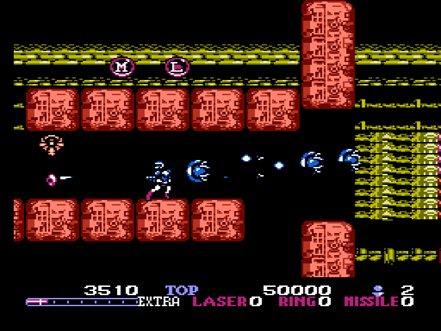 Negativ hervorzuheben sind jedoch vor allem zwei Levels, die sich nicht an das oben beschriebene Design der restlichen fünf Levels halten. In diesen spielt man die Figur nämlich aus der Vogelperspektive. Nachdem man eine mehr als nur kryptische Karte gezeigt bekommt, auf der der eigene Startpunkt und der des zu zerstörenden Endgegners gezeigt wird, startet man in einem endlos in alle Richtungen aneinandergereihten Raum, in dem man oben besagten Boss ausfindig zu machen und zu zerstören hat. Insbesondere Ersteres gestaltet sich als äußert schwierig und vor allem auch langweilig, da man keinerlei Anhaltspunkte hat, wo man sich genau auf der Karte bzw. dem aktuellen Raum genau befindet. Insgesamt hätten sich die Entwickler diese Levels eher sparen können. Super Probotector (SNES) zeigt, wie man einen solchen Wechsel in eine andere Perspektive sinnvoll hätte umsetzen können.