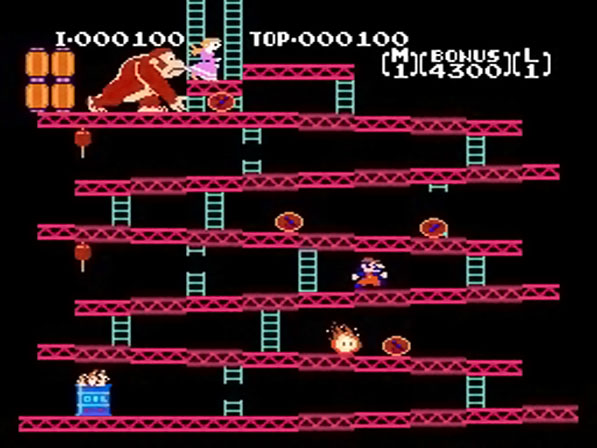 1980 wandte sich Nintendo-Boss Hiroshi Yamauchi an einen jungen, unerfahrenen Mitarbeiter von Nintendo und erteilte ihm den Auftrag, ein Spiel zu entwickeln - und zwar sein aller erstes Spiel! Er ließ sich vom Filmhit "King Kong" inspirieren und schuf einen Gorilla, der die Freundin eines Zimmermanns entführte. Bei der Namensgebung suchte der junge Designer in einem Englisch-Wörterbuch nach einem Begriff, für störrisch und stur. Fündig wurde er unter D, wo ihm das Wort Donkey (zu deutsch: Esel) gefiel. So hieß der Gorilla fortan also Donkey Kong. Die entführte Dame nannte er Pauline und der Zimmermann trug ganz einfach den Namen "Jumpman". Dieser musste schlussendlich den Gorilla auf dem Arcade-Automaten über 4 bildschirmgroße Baustellen-Levels verfolgen, um am Ende seine geliebte wieder in den Armen halten zu können.