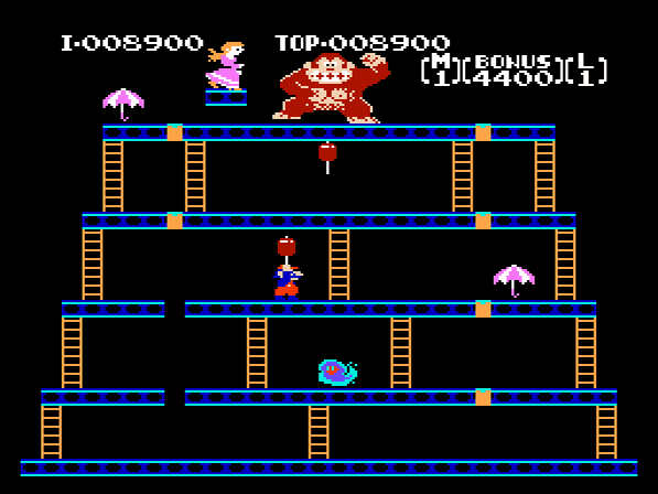 Super Mario und Donkey Kong haben für mich den größten Sympathiefaktor aller Nintendo-Recken inne, insbesondere in ihrem 1981er-Debüt-Combo sind sie doch am knuffeligsten: Mario, der ewig lauten Schrittes die Stockwerke hochquietschende Hutzelmann sowie obenauf der stampfende, mit herumliegenden Fässern ein einzigartiges Chaos zelebrierende, Zirkusaffe. Bemerkenswert ist zudem – hinsichtlich des Erscheinungszeitraums – die einzigartige Bildsprache Miyamotos: Mit Augen versehene Flammen, herumliegende pinke Handtaschen und Regenschirme sowie der überdimensionale Vorschlaghammer bilden einen cartoonesken, produktiven Gegenpol zur Einheits-Apokalypse versammelter Space Shooter der Post-70er-Ära. Alles in allem ein zeitloser, eingängiger und bis auf den heutigen Tage motivierender Klassiker; lediglich der schmerzlich vermisste Fließband-Level gibt Anlass zur Kritik, dank Rare aber in Donkey Kong 64 nachholbar.
