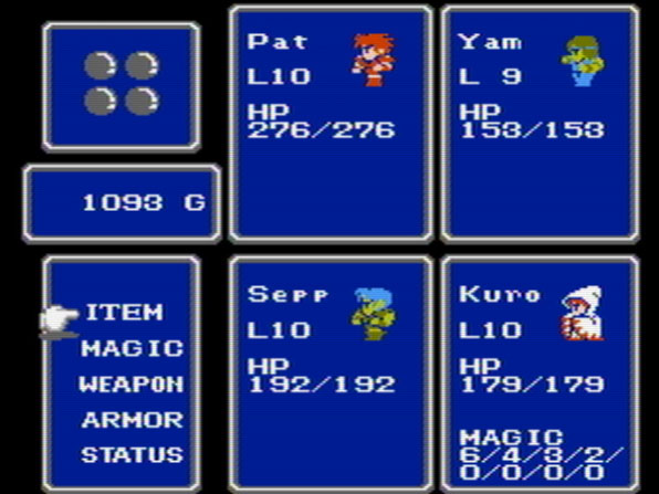 Neuartig an Final Fantasy gegenüber dem Genrekonkurrenten Dragon Quest war damals, dass man eine Heldentruppe steuern sowie deren Professionen individuell wählen konnte. Jede Heldenklasse hat unterschiedliche Fähigkeiten und beeinflusst den Spielererfolg massiv: Ein Rotmagier etwa kann sowohl Offensiv- als auch Defensivtechniken lernen, der Weissmagier ist in erster Linie defensiv unterwegs bzw. wird vorwiegend als Heiler eingesetzt, während der Schwarzmagier hauptsächlich Angriffe tätigt. Mit dem Schwarzgürtelträger und dem Krieger gibt es auch noch einige handfestere Burschen im Spiel zur Auswahl. Die Auswahl zu Beginn prägt das Geschehen ungemein und will gut überlegt sein, es empfiehlt sich eine ausgewogene Mischung zwischen Offensiv- und Defensivmagiern sowie hemdsärmeligen Kämpfernaturen zusammenzustellen. An der korrekten Auswahl der Startkonstellationen scheiden sich bis heute die Geister bzw. dieses lädt auch zu entsprechenden Challenges ein. Ein Spiel zu beginnen mit vier Weissmagiern ist aber vermutlich nicht sehr effektiv...
