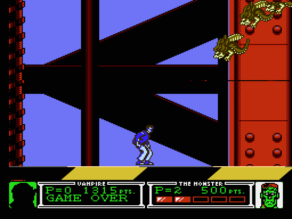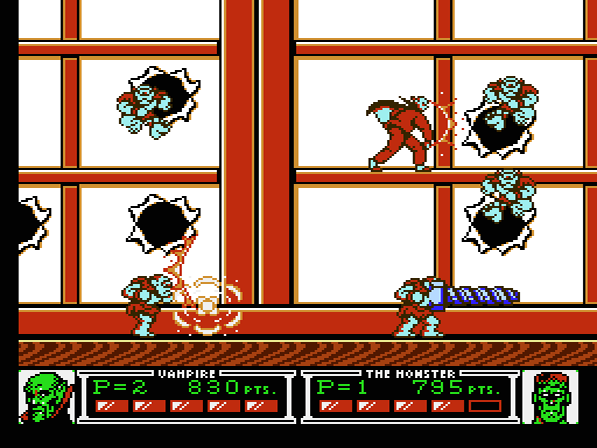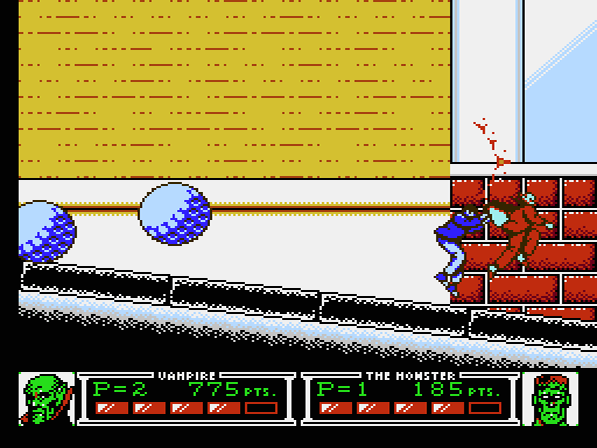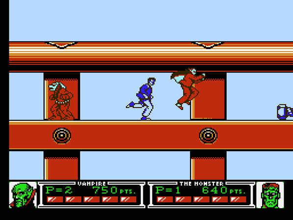 Die Story des Spiels darf man getrost vergessen: Die Protagonisten Vampir und Monster (Frankensteins Monster, um genau zu sein) sitzen gerade gemütlich vorm typischsten aller Röhrenfernseher der späten 80er, als ihnen auf dem Bildschirm plötzlich der finstere Hexenmeister erscheint. Ihr anscheinender Erzfeind fordert die beiden ohne ersichtlichen Grund zum Kampf auf, auf den sich die gelangweilten Couchpotatoes natürlich ohne mit der Wimper zu zucken einlassen. Sehr tiefgründig das Ganze also, und so sinnfrei, wie man es von einem Titel der Epoche dieses Machwerks nur erwarten darf... warum nur kommen Storywriter aktueller Videospiele nicht mehr auf derartige Geistesblitze? Das würde Spielern aktueller Konsolen vermutlich die eine oder andere minutenlange, nervtötende Cutscene ersparen…