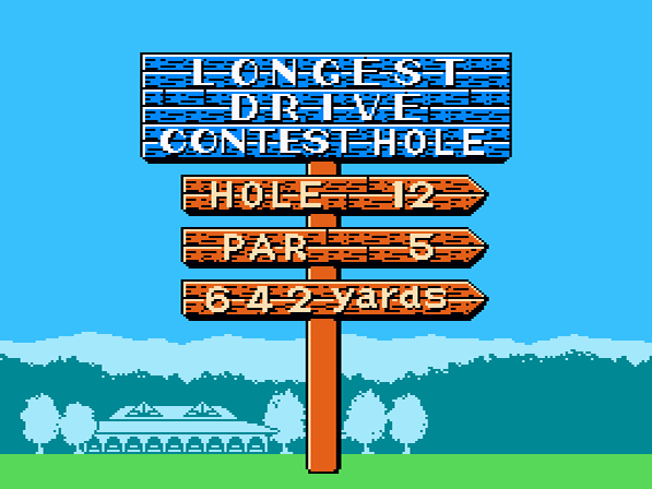 Doch dem Golferherz werden auch abseits des Grüns jede Menge Möglichkeiten geboten, sich diesen Frust und die Zeit zu vertreiben: Neben den drei erwähnten Spielmodi lassen sich im Clubhaus der eigene Name registrieren, Schläger aus dem eigenen Portfolio austauschen, und diverse Optionen zur eigenen Spielweise ändern. Außerdem darf man dank der batteriegestützten Speicherfunktion des Spiels diverse Statistiken bewundern, sein bislang verdientes Preisgeld einsehen, den Namen aller an Turnieren teilnehmenden Golfer verändern, ein Training durchlaufen und sogar seine besten Schläge wie Hole-in-Ones noch einmal per Replay-Funktion Revue passieren lassen. All dies war zu Zeiten des NES keine Selbstverständlichkeit und trägt enorm zur potentiellen Langzeitmotivation des Titels bei. Es wird dem Spieler erfolgreich suggeriert, Mitglied in einem echten Golfclub zu sein, und der eigene Fortschritt der Profikarriere wird fortlaufend dokumentiert und festgehalten. Zu verdanken ist der Umfang des Spiels übrigens Satoru Iwata höchstpersönlich, der diesen mittels einer eigens für den Titel entwickelten Kompressionstechnik ermöglichte. Dass im Endeffekt "nur" drei Kurse à 18 Löcher zur Verfügung stehen, für die man sich spätestens nach dem dritten Bespielen entsprechende Taktiken zurechtgelegt hat (die in der Umsetzung aber selbstverständlich herausfordernd bleiben), wird durch die Fülle an Aktivitäten im Clubhaus somit ein wenig abgefedert.