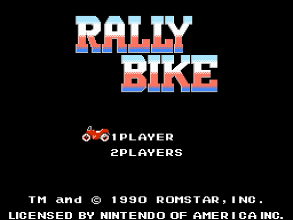 1988 brachte der japanische Videospielhersteller Taito mit Rally Bike einen neuen Racer in die Spielhallen, in welchem es aus der Vogelperspektive einen Motorradfahrer durch verschiedene Strecken zu lotsen galt. Zwei Jahre später erschien der Tital auch für Nintendos 8-Bit Konsole. Für die Konsolenumsetzung zeichnete sich das amerikanische Studio Romstar verantwortlich.
