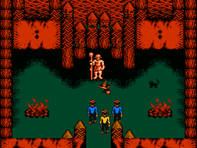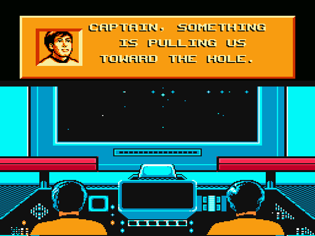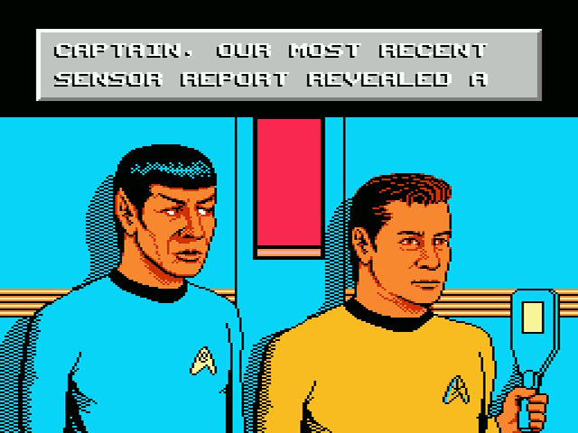 Leider wirken die optisch teilweise durchwachsenen, aber dennoch im überdurchschnittlichen Bereich der 8-Bit-Ära angesiedelten Umgebungsgrafiken sehr trist und auf die Dauer wiederholend. Ähnlich verhält es sich mit der Sounduntermalung: Abgesehen von einem gut portierten Thema der Fernsehserie ist die restliche Akustik des Moduls allenfalls guter Durchschnitt, manche seichte und simpel gestrickte Melodien erinnern an Fahrstuhlmusik. Im Großen und Ganzen ist die Technik aber dennoch mehr als akzeptabel, gerade die großgezeichneten Crewmitglieder auf der Brücke sprechen für sich. Die gelegentlichen Ruckler bei erhöhtem Aufkommen bewegter Objekte dürfte der NES-Freund als nicht wirklich störend empfinden. Insgesamt darf man also Interplay ein Lob für das Spiel aussprechen: Sie haben den Geist der Vorlage getroffen und diese technisch überdurchschnittlich, mit einem Augenzwinkern versehen umgesetzt. Was man von Konami Deutschland übrigens nicht behaupten kann: Die in Frankfurt ansässigen, für die Übersetzung des US-Moduls in die heimische Sprache verantwortlichen Mitarbeiter haben sowohl in rechtschreiblicher als auch grammatikalischer Sicht im wahrsten Sinne glatt Schiffbruch erlitten. Derart verhunzte Übersetzungen (z.B. "Romulans") oder Defizite im Bereich Deutsch (z.B. "Shiffe") ist einem seit den Schwulitäten in der "Powerblade"-Spielanleitung nicht mehr untergekommen ;)