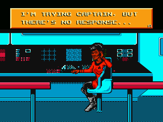 Reiseziele lassen sich individuell durch den Captain über die bordinterne Sternenkarte festlegen: Hier wird ein Kurs auf einen bestimmten Himmelskörper, sei es ein Mond, Planet oder Asteroid, virtuell abgesteckt und nach kurzer Rücksprache mit Steuermann Sulu darf der Spieler nun, sofern es die notwendigen Ressourcen an Dilithium erlauben, zu einem markanten "Energie!" übergehen. Interstellare Schwierigkeiten, etwa die Verletzung des romulanischen Raumterritoriums und die daraus resultierenden diplomatischen Verhandlungen enden meist in einer gewalttätigen Auseinandersetzung zwischen den Raumschiffen: Per Fadenkreuz werden dann Phaser bzw. Photonentorpedos gezielt gen Richtung des romulanischen Raubvogels manövriert. Verhandlungen, welche im Grunde nur eine Bitte um Gnade bezüglich der Verletzung des feindlich gesinnten Raumsektors darstellen, laufen in vertrauter Manier über den großen Hauptschirm ab, auf welchem nicht immer schnaubende Romulaner animiert sind - Nach dem Scheitern bzw. der Beschädigung des eigenen Schiffes erläutert einem z.B. ein Sternenflottenadmiral die Anklage: Sachschaden an Föderationseigentum und einen Verweis vor das Kriegsgericht - Game Over.