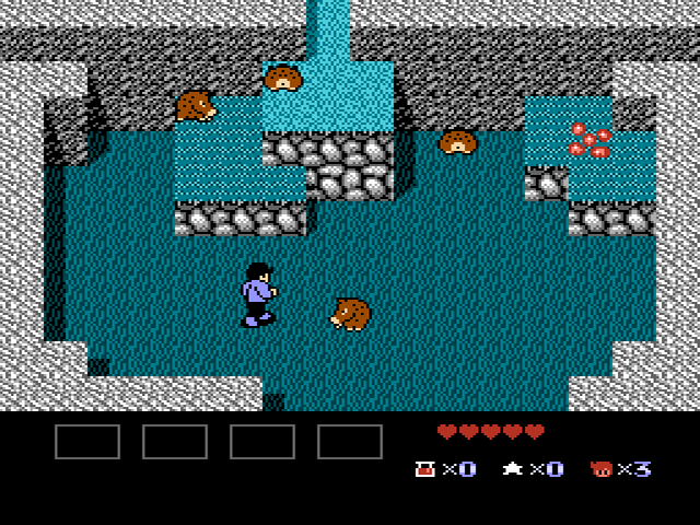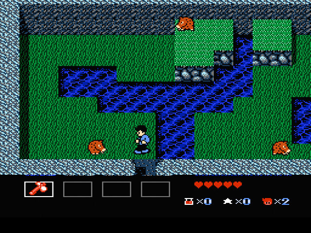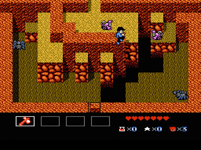 Auch wirkt das Kampfsystem im Vergleich zum ersten Teil der Zelda-Reihe noch immer eher hölzern, da sich Mike doch sehr viel unbeweglicher anstellt als ein gewisser Link. Dies führt des Öfteren zu einer Reihe von oftmals billigen, aufeinander folgenden Treffern, denen man quasi hilflos ausgesetzt ist. Daher ist es elementar wichtig, dass man die Bewegungs- und Angriffsmuster jedes einzelnen Gegnertyps kennt und einstudiert hat. So sollte man die früh im Spiel auftretenden Igel etwa stets aus diagonalem Winkel angreifen, da sie bei direktem Blickkontakt mit einer Rollattacke auf Mike zugeschossen kommen. Leider ist es manchmal beim Wechsel von dem einen in den nächsten Screen völlig egal, wie sehr man sich auf die nächste Herausforderung vorbereitet, da man teilweise unweigerlich in bereits vorhandene Gegner im neuen Screen hineinläuft. Faires Gameplay sieht anders aus.