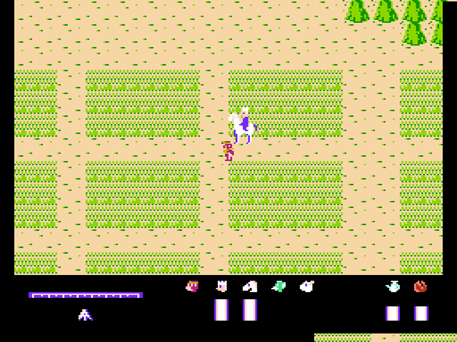 Nach dem Warp befindet ihr euch auf einer größeren Landmasse und die langatmige Suche nach dem nächsten Ziel geht weiter. Hinzu kommen nun auch gelegentliche Kämpfe, bei denen der Bildschirm wie in Zelda II in eine Seitenansicht wechselt. Allerdings laufen euch die Gegner auf der Oberwelt - anders als im besagten Zelda-Abenteuer - nicht sichtbar über den Weg. Mit der Zeit wird euch auch klar, dass es sich dabei ebenso wenig um echte Zufallskämpfe wie z.B. im RPG Final Fantasy handelt. Stattdessen verhält es sich wie mit dem versteckten Warp: Die Felder, auf denen euch Kämpfe erwarten, sind von vorne herein vom Spiel festgelegt, aber unsichtbar. Billiger geht's nicht.